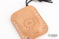 This is a Stainless Steel Hate Pig with one stamp. Comes with a brown leather sheath. Excellent condition.