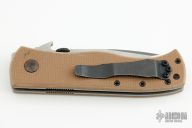 This production CQC-7V has a satin finish blade with a partially serrated edge and tan G-10 scales, titanium liners and a black SS tip up clip. #1965 and dated 2013. Has a couple scuffs, otherwise excellent condition.