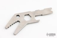 "If the Prybaby and the LockNut Monster had a lovechild it would be named Crypto! Made of high strength cutlery steel. The features include open jaws with six offset SAE wrench sizes: 1/4", 5/16", 3/8", 7/16", 1/2", and 9/16". Also a dedicated 1/4" hex bit opening, 1/2" wrench, prytool and cap lifter. Useful, compact and impossible to stop fiddling with, thanks and enjoy!" Comes with bag and card. Excellent condition.