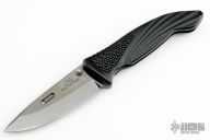 The handle is black aluminum with rayskin inlay. Black blade. Comes with original box and papers.  SHIN #646. Has a couple light marks on the clip, otherwise excellent condition.