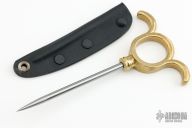 This SOE Ring Spike by GHK features a differentially hardened Stubbs Tool Steel tool steel spike with .210" diameter. The handle is high tensile manganese bronze. Comes with a kydex sheath. New from maker.