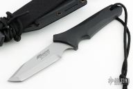 THE TIMBERLINE AVIATOR KNIFE WAS DESIGNED SPECIFICALLY FOR AVIATORS, HOW DO I KNOW??? I TALKED TO THEM AT THE BLADE SHOW IN ATLANTA AND THIS WAS ON THEIR DESIGN TABLE. THE 4 INCH BLADE IS MADE OF 440C WHICH IS A GREAT STEEL AND RESISTS RUST WELL AND IT IS VERY TOUGH. THE KNIFE WAS DESIGNED FOR CUTTING WIRES FROM AVIONICS TO FENCING WIRE. ACTUALLY, THE AVIATOR IS A SCALED DOWN VERSION OF EMERSON'S SPECWAR KNIFE. THE HANDLES ARE VERY UNIQUE FOR A FIXED BLADE BEING DESIGNED TO BE VERY ERGONOMIC. IT IS GLASS FILLED NYLON HANDLE WITH THE ANGLES FITTING THE HAND PERFECTLY. IT COVERS THE FULL TANG BLADE. IN A WORD THIS KNIFE IS - TOUGH. THE KYDEX SHEATH SYSTEM IS ALSO VERY WELL DESIGNED. IT CAN BE CARRIED ABOUT ANYWHERE. IT CAN UTILIZE STRAPS TO MOUNT TO A LEG OR TO NUMEROUS OTHER OBJECTS. IT ALSO HAS A BELT LOOP. THE STRAIGHT EDGE OF 440C STEEL HAS A ROCKWELL HARDNESS OF 58 TO 59. THE BLADES FINISH IS BEAD BLAST MATTE. THIS KNIFE IS NO LONGER MADE BUT VERY WELL LIKED. SO IF YOUR A BUSH PILOT OR PACKING OUT AND NEED A GREAT CAMP KNIFE, THIS IS IT. Comes with original kydex sheath. Excellent condition.