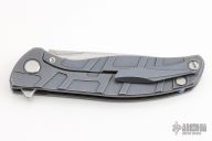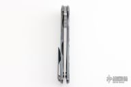 This Model 95 framelock flipper from Shirogorov has a flat ground and tumbled blade with a milled and tumbled titanium frame with matching tip up clip. Excellent lockup, crisp detent, and perfect seating. Includes original box and papers. Excellent condition.