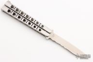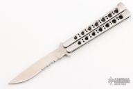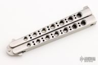 The model 48S by Benchmade is rare and hard to find. Has a satin finished partially serrated blade. Stainless steel skeletonized handles with T latch. Comes with nylon belt sheath. Has some light scuffs and scratches, excellent condition otherwise.