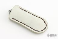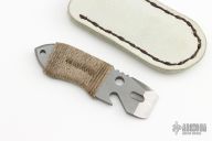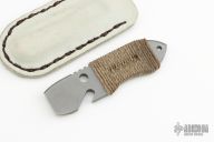 The Brew Tool, by Jensen Bergman, features a pry bar and bottle opener composed of satin finished A2. .186" Blade Stock .970" Blade Depth. Notched thumbrest. The handle is hemp wrapped. Comes with a leather slip sheath. New condition.