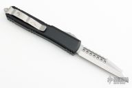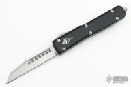 This Ultratech by Microtech Knives features a stonewashed Warhound blade with satin flats and false top edge. The handle has a black aluminum frame with tip down blasted stainless steel clip and hardware. Comes with original box and papers. 10/2022, S/N 488. Excellent condition.
