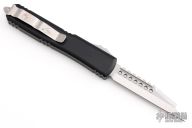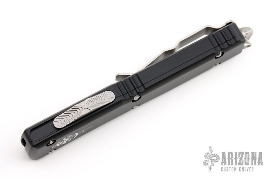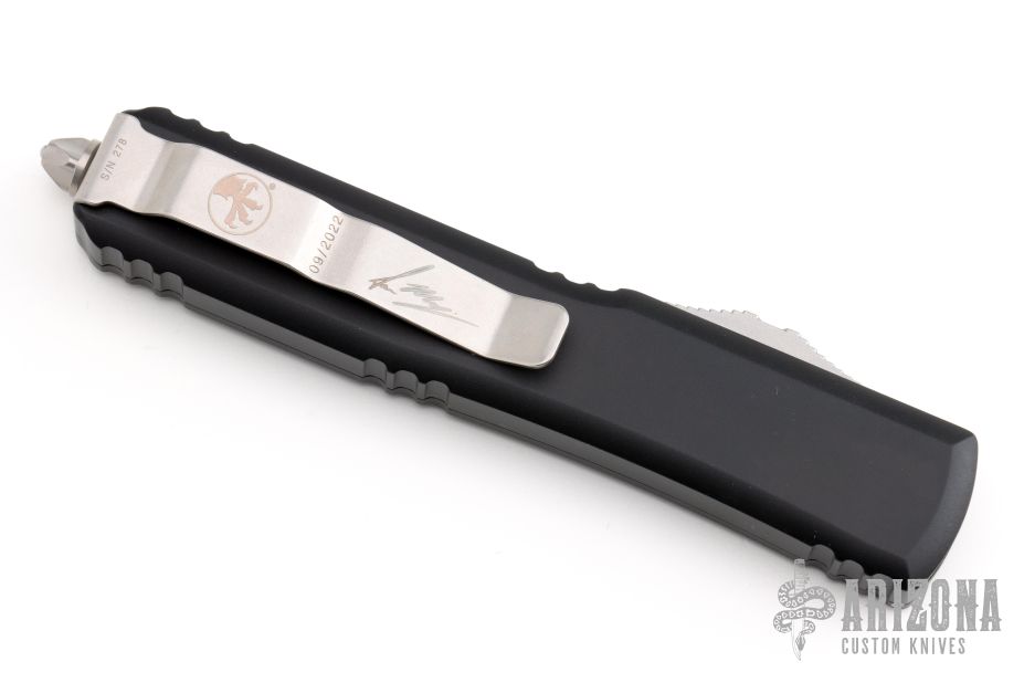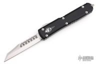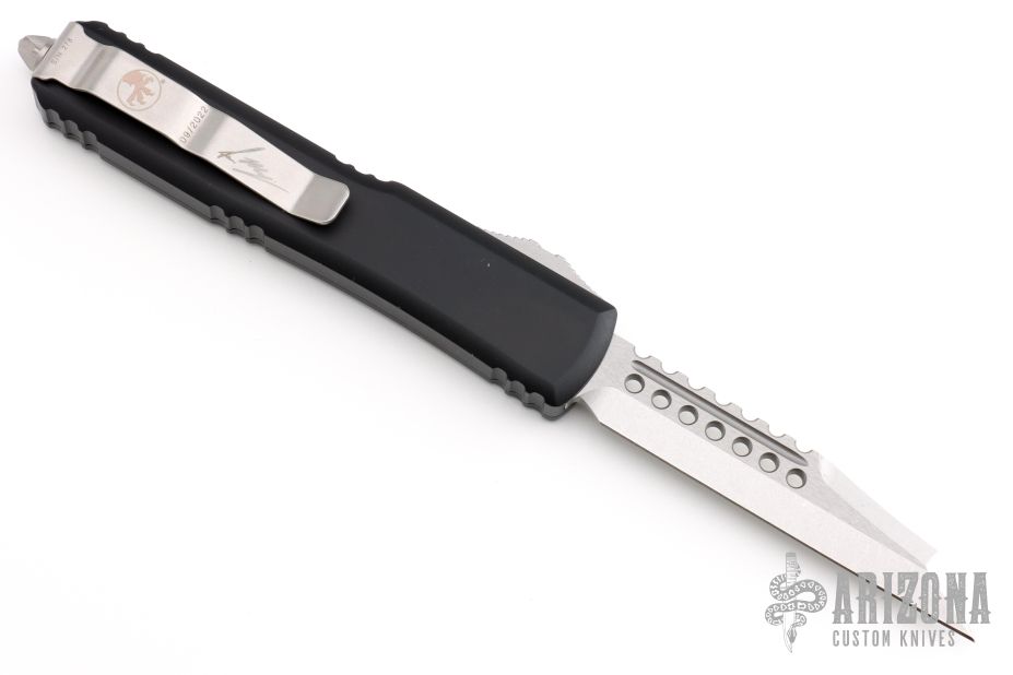 This Ultratech by Microtech Knives features a stonewashed Warhound blade with satin flats and false top edge. The handle has a black aluminum frame with tip down blasted stainless steel clip and hardware. Comes with original box and papers. 09/2022, S/N 278. Excellent condition.