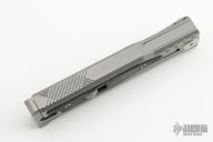 The smaller EXO-M has all the benefits of the full-size EXO from Reate Knives, but has even more to offer! For one, the smaller size makes this an even more convenient pocket knife. Plus, with a secure titanium pocket clip and lock, Reate ups their game with this gravity OTF Knife. A safety slide lock on the face of the handle is ideal for user safety, and the new pocket clip makes EDC carrying as easy as can be. By pinching the milled handle scales and dropping the frame at an angle, you can easily slide the blade in and out with nothing but gravity. If you haven't guessed it already, this means hours of quality fidgeting! That aside, the build and materials of this knife are Reate standard: simply excellent and endlessly functional. Like the EXO, the EXO-M boasts flawless fit and finish, smooth action, and a razor edge to meet your cutting needs. It includes a leather slip for safe carrying as well as the titanium clip.