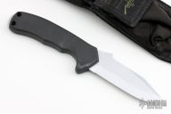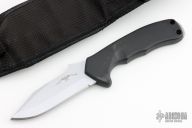 This PUK by Emerson features a silver clip point blade with a notched thumbrest, .128" blade stock and 1.100" blade depth, hidden tang construction with a molded composite handle. Comes with a black nylon sheath. Has a few light scuffs, has been resharpened, otherwise good condition. Dated 2000