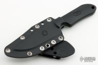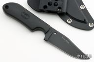 This Perrin inspired Street Beat by Spyderco has a satin finished VG-10 clip point blade with full tang and notched thumb rest. Blade stock is .154", depth is 1.087". Handle is black composite with a lanyard tube. Excellent condition. Comes with Kydex sheath.