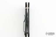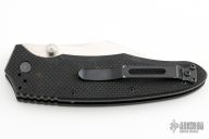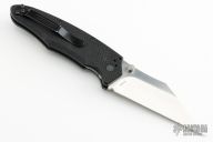 This knife features a satin finished wharncliffe blade with dual thumbstuds. The handle has black G-10 scales, stainless steel liners, and a black 4-way reversible clip. Has a couple light scuffs, otherwise excellent condition.