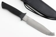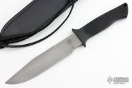 This Nightfighter 5 Bowie by EK Knives was made in collaboration with Bark River and Xpedition Knives Inc, it features a bead blasted blade with false top edge, .213" blade stock and 1.270" blade depth, hidden tang construction with a rubber grip. Comes with original box and black leather sheath. Has a couple light scuffs, otherwise excellent condition.