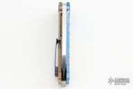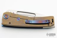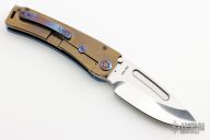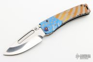 This Marauder by Medford Knives features a stonewash finished drop point blade with fullers. The handle has a laser engraved titanium frame with D2 skull crusher at the butt, anodized hardware and tip up clip. Nice detent, lockup and blade seating. Comes with original box, case and papers. Excellent condition.