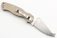 This Paramilitary 2 Linerlock Folder has a satin finished clip point blade with thumb hole and notched thumb rest. The handle has green canvas micarta scales with stainless steel liners and stainless steel 4-way reversible clip. Comes with original box and papers. New condition.