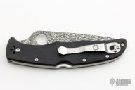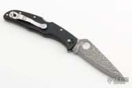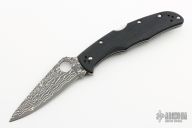 This Endura lock back folding knife by Spyderco features a VG10 core San Mai Damascus blade, thumbhole and notched thumbrest. The handle has pakkawood scales with stainless steel backspacer and 4-way reversible stainless steel clip. Comes with original box and papers. New condition.