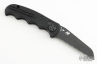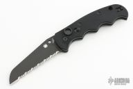 This Spyderco Autonomy features a black fully serrated blade, H-1 blade steel. The handle has black G-10 scales, black stainless steel liners, and a tip up reversible clip. Excellent condition. This knife is a factory second.