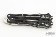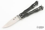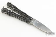 This Spyderfly 2 Balisong by Spyderco has a satin finished blade. Handle is black G10 over stainless steel liners and stainless steel paper-clip style pocket clip. Comes with original box.  Excellent condition.