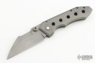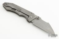 This Nightshade by Jonathan McNees is a JVO Design. It features a stonewashed wharncliffe blade with notched thumbrest and dual thumbstuds. The handle has a stonewashed titanium frame, backspacer and tip up clip. Comes with zippered case and COA dated 2019. Excellent condition.