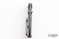 This Custom Ice Lite by Brian Efros features an acid washed blade with dual thumbstuds. The handle has a blasted titanium frame with matching tip up clip with hidden screws, zirconium backspacer. Nice detent, lockup and blade seating. Has a couple scratches, otherwise excellent condition. Comes with a zippered case.