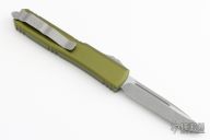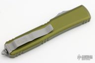 This Ultratech OTF automatic features a stonewash finished drop point blade with fullers and single blade edge. Handle is contoured OD Green aluminum, marked 11/2022 with serial number 263390. Stainless steel hardware, and clip. Comes with original box and papers. Excellent Condition.