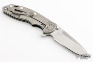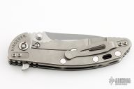 This XM-18 Spanto by Rick Hinderer Knives features a stonewash m390 finished blade, notched thumbrest and flipper and dual thumbstuds. The handle has a black G-10 scale with a titanium frame and a matching tip up pocket clip. Clip can be mounted for tip up or down carry. Nice lockup, seating, and detent. Comes with a Hinderer box(not original).   Excellent condition.