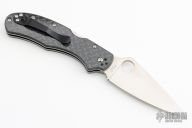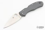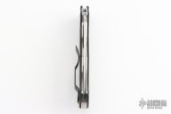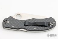 This lock-back folder features a satin finished blade with thumb-hole and notched thumb-rest. The handle has carbon fiber scales, stainless steel liners and back-spacer, and black stainless steel clip, 4-way reversible. Comes with original box and papers. Excellent condition.