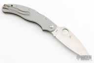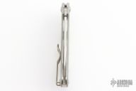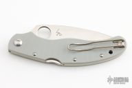 The blade is 3.5 inches long, thinly ground and plain edged to pass easily through material. The folder’s profile is founded on the premise that a comfortable and usable pocket knife feels like a natural extension of your hand. Better ergonomics translated into better control. We accomplish this by adding a substantial finger choil that creates a spot for the index finger to naturally settle while positioning the thumb directly above the index nger on the blade’s spine. The spine has slip-resistant jimping eliminating the hand slipping forward or backward while gripping the knife. The gray G-10 handle features a mid-positioned back-lock with a low profile wire clip to hold the folder deeply in a pocket facing tip-up.