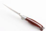 This Tahca by Lakota was produced by Moki. It features a satin finished blade with .119" blade stock and .872" blade depth, full tang construction. The handle has stainless steel bolsters, rosewood scales. Comes with a brown leather sheath and original box. Excellent condition.