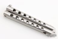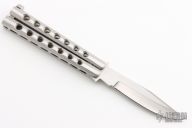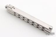 This balisong by 29 Knives features a satin finished blade with swedge. The handle is composed of satin finished integral stainless steel. Has some light scratches, otherwise excellent condition.