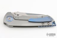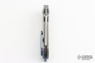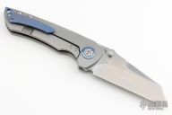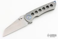 This Critical from Kizer was designed by Matthew Christensen. It features a tumble finished blade with notched thumbrest and flipper. The handle has bead blasted titanium over an anodized titanium backspacer, has anodized titanium pivot collars, and bead blasted tip up clip. Includes original zippered case and box. Has a few scuffs, otherwise excellent condition.