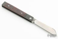 This Feelgood Jack is a Doctor's Knife slipjoint model by Jack Wolf Knives featuring a satin finished clip point blade with nailnick. The handle has integral bead blast finish fluted titanium front bolsters and liners, carbon fiber scales with a stainless spring. Comes with box, metallic tube with Sean Tiffany artwork, leather slip, sticker and microfiber cleaning cloth. New condition.