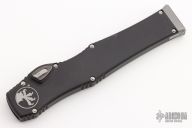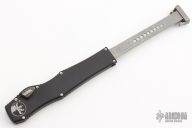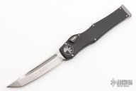 This Halo VI by Microtech knives features a stonewashed tanto blade with fullers. The handle has a black aluminum frame with blasted stainless steel hardware and charging handle. Dated 04/2018 and S/N 619. Comes with Microtech box and papers. Excellent Condition.