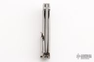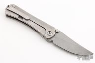 This SBKF by Borka Blades features a stonewash finished blade with dual thumbstuds. The handle has a stonewashed and laser engraved titanium frame with a matching tip up clip. Nice detent, lockup and blade seating. Comes with zippered case and COA dated 2018.  Excellent condition.