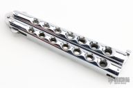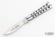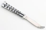 This Balisong by Parker Cutlery Company features a satin finished blade. The handles are chrome plated. Has a couple of light scratches, otherwise excellent condition.