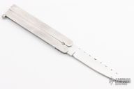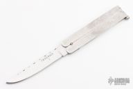 This Balisong features a mirror polished blade with a file worked blade spine. The handle features channeled aluminum frames and a t-latch. Has some light scratches, otherwise excellent condition.