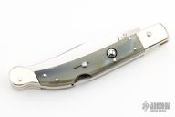 This Sahara lockback auto by AGA Campolin features a polished blade, Nickle silver bolster and buffalo horn scales, brass liners. Nice function, strong firing and lock up. Excellent condition.