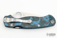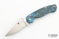 This Paramilitary 2 Linerlock Folder from Spyderco has a satin finished clip point blade with thumb hole and notched thumb rest. Handle has black/blue Fat Carbon scales with stainless steel liners and stainless steel 4-way reversible clip. Comes with original box and papers. Excellent condition.