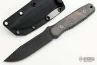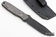 This Plan B by Blackside Customs features a black cerakote blade with fullers and notched thumb and finger rests, .130" blade stock and 1.045" blade depth, full tang construction. The handle has CamoCarbon scales. Comes with a kydex sheath with logo plate and soft loop. Comes with original box and COA dated MicroBatch 2023. New from maker!