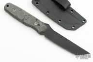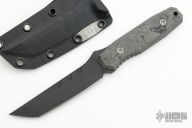 This Kimura by Blackside Customs features a black cerakote blade with notched thumb and finger rests, .130" blade stock and .945" blade depth, full tang construction. The handle has CamoCarbon scales. Comes with a kydex sheath with logo plate and soft loop. Comes with original box and COA dated MicroBatch 2023. New from maker!