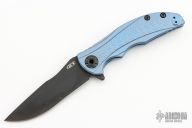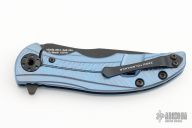 This 0609 RJ Martin flipper by Zero Tolerance features a black blade with notched thumbrest and flipper. The handle has a milled and anodized titanium frame with a tip up reversible stainless steel clip. Rides on bearings, nice detent, lockup and blade seating. S/N 0232. Has a couple light scuffs, otherwise excellent condition.