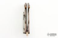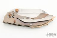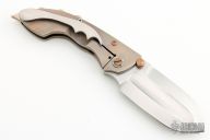 This Gladius by Phil Harvey was modeled after a Roman Short Sword. It features a multiground hand rub satin finished blade with dual thumbstuds, the blade stock is .243" thick. The handle has an orange peel finished and anodized titanium frame and clip, anodized titanium backspacer, colored pivot. Nice detent, lockup and blade seating. This thing is a beast. Excellent condition.