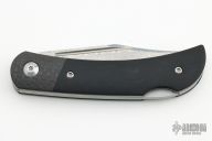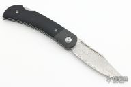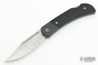 This Rustic Gent has a black G-10 handle and a Damascus steel blade.