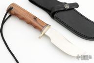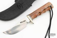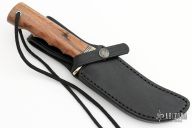 This Model 22 Outdoorsman by Randall Made Knives features a satin finished blade with notched thumbrest, .153" blade stock and 1.278" blade depth, hidden tang construction. The Model 22 is a thinly-beveled blade for the professional outdoorsman. The handle has a nickel silver guard, finger groove spalted sycamore wood handle with black/duralumin spacers, lanyard hole in the butt. Comes with a black leather sheath and a Randall zippered case. Excellent condition.