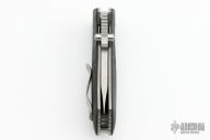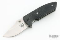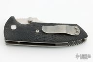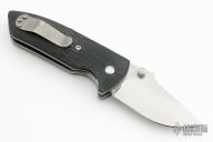 This ESV linerlock by Les George features a tumble finished blade with notched thumbrest and dual thumbstuds. The handle has milled black G-10 scales, stonewashed titainum liners, anodized titanium tip up clip, black G-10 backspacer with lanyard pin. Nice detent, lockup and blade seating. Excellent Condition.