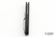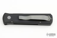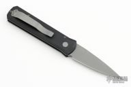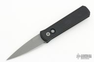 This 720 Godson from Pro-Tech Knives features a bead blasted blade with swedge. The handle has a black aluminum frame with bead blasted button, pivot and tip up clip. Comes with original box and papers. New from maker!
