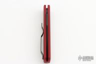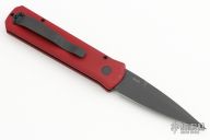 This 721 Godson from Pro-Tech Knives features a DLC coated black blade. The handle has a red aluminum frame with black button, pivot and tip up clip. Comes with original box and papers. New from maker!