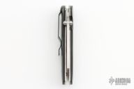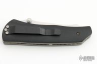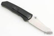 This knife by Joe Pardue features a satin finished blade with dual thumbstuds. The handle has black G-10 scales, satin finished titanium liners, tip down black stainless steel clip. Nice detent, lockup and blade seating. Excellent condition. Comes with a zippered case.
