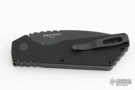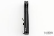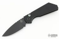 This Pro-Strider PT by Pro-Tech and Strider Knives features a black blade with notched thumbrest. The handle has a knurled black aluminum frame with black hardware and black stainless steel tip up clip. Abalone push button. #60 of 100. Comes with original box and papers. Excellent condition.