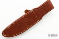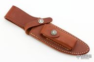 A. Model A– Supplied with Models 1, 2, 3, 4-5″ and longer, 5- 5″ and longer, 11, 12-6″, 16-7″ SP#1, 19, 20, 22, 23, 25-6″ and 27. With hone in the pocket. Sheath supplied with Models 12 and 13 similar, but larger, with hone in pocket. (Please Note: On 4 1/2″ and 5″ sheaths, the keeper strap snaps around the handle because there isn’t enough room above the hone pocket for a diagonal strap.)
