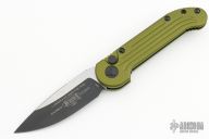 This LUDT by Microtech features a two-tone black finished blade. The handle has a green aluminum frame with black hardware and tip down clip. Comes with original box and papers. Dated 01/2023 and s/n 29813. Has a couple light scuffs on the blade, excellent condition otherwise.